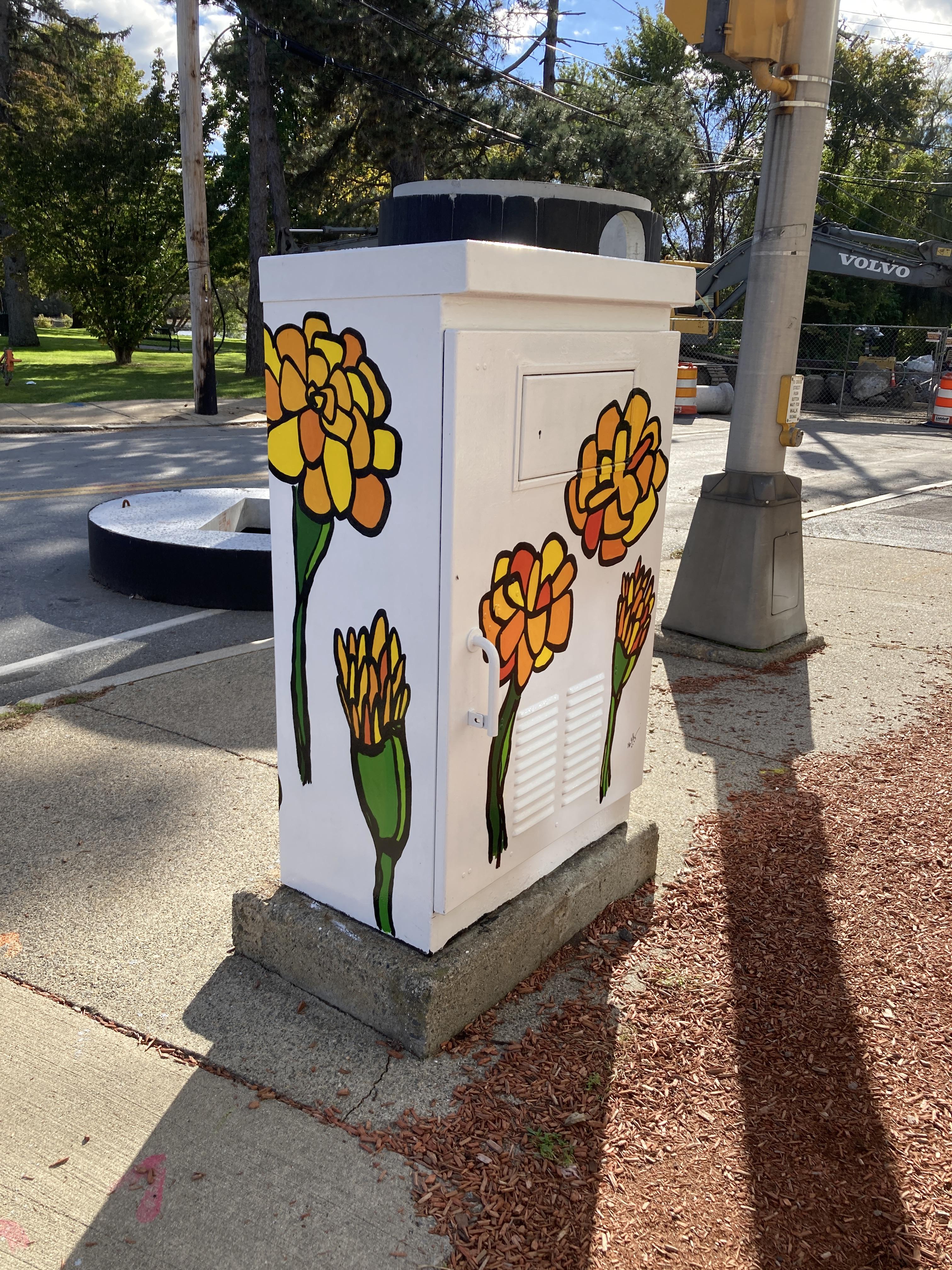 Mary Grassi decorated the box on Lake Street at Main Street (across from Stop & Shop) with marigolds.
